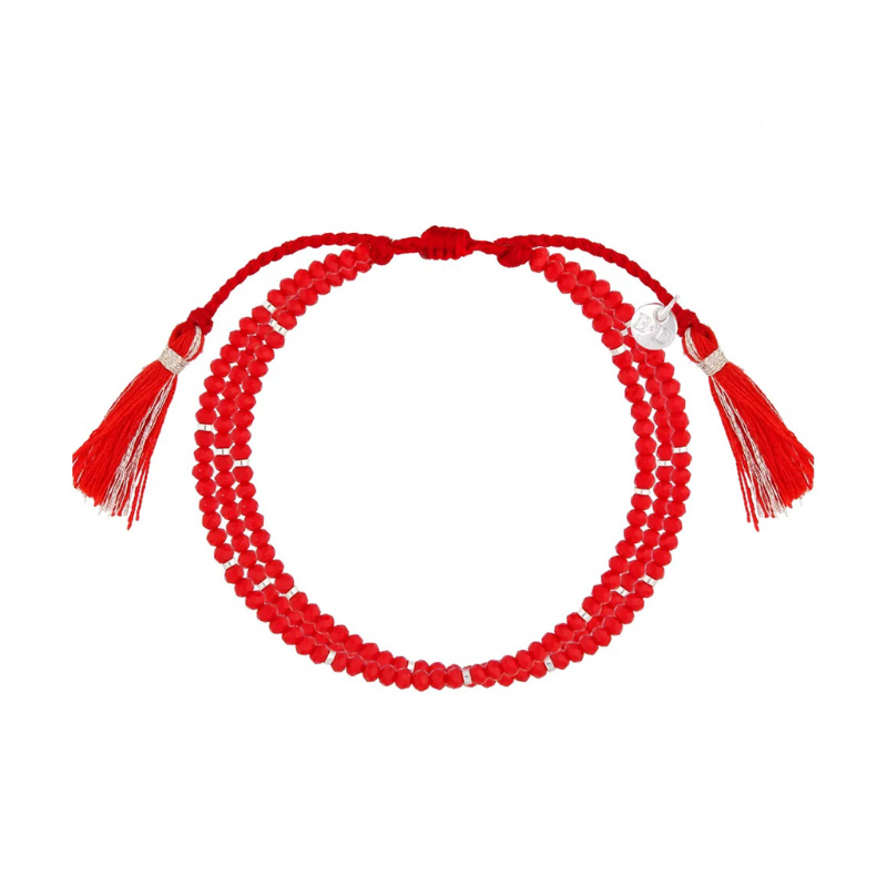 Bransoletka na sznurku z czerwonymi kryształkami