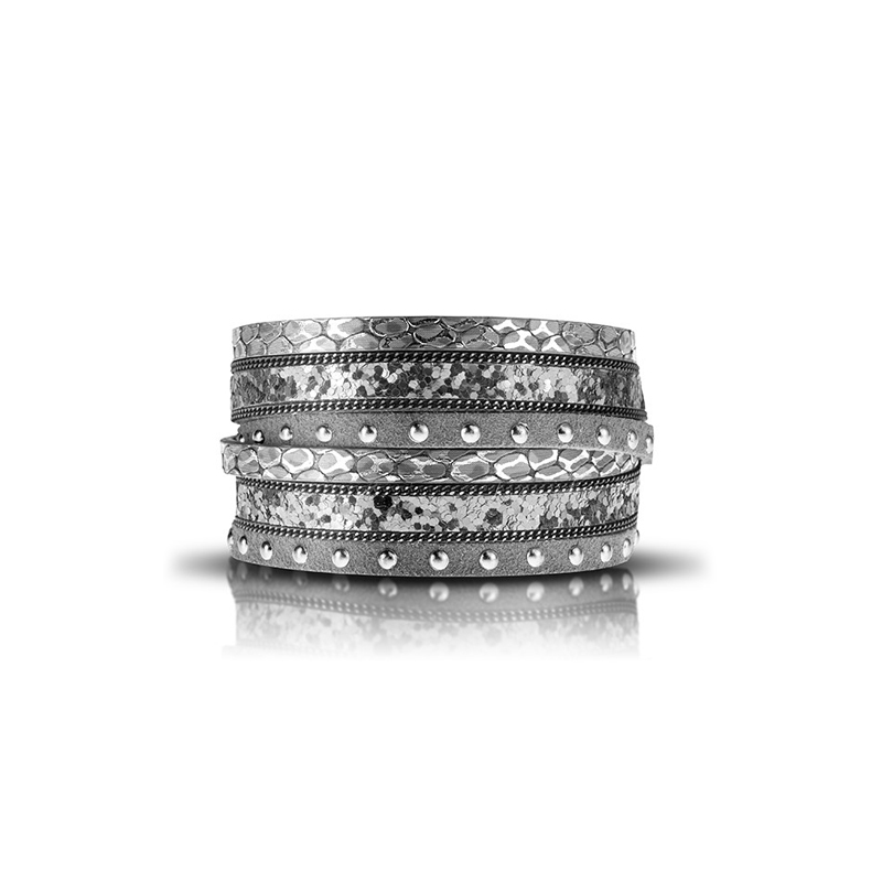 Bransoletka ze stali szlachetnej skórzana podwójna