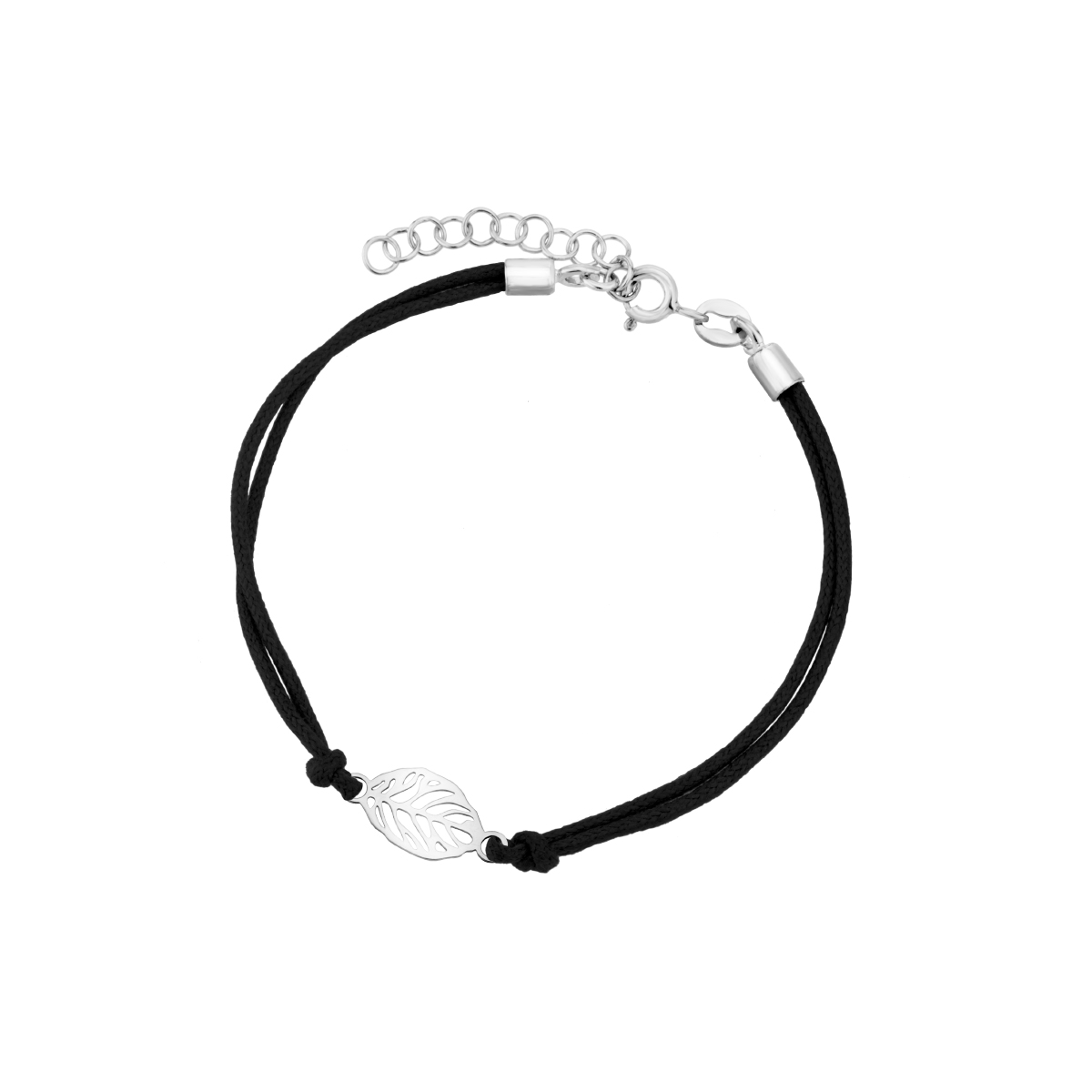 Bransoletka srebrna na czarnym sznurku z listkiem