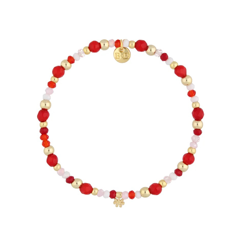 Bransoletka beżowa z kamieniami i różą z mosiądzu