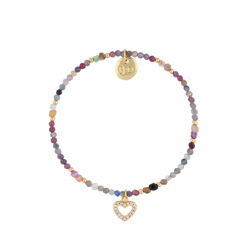 Bransoletka z granatami i serduszkiem z mosiądzu