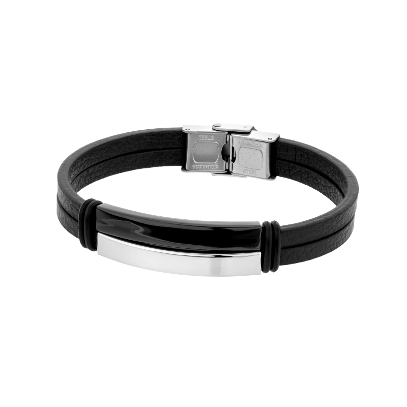 Bransoletka ze stali szlachetnej i czarnej skóry