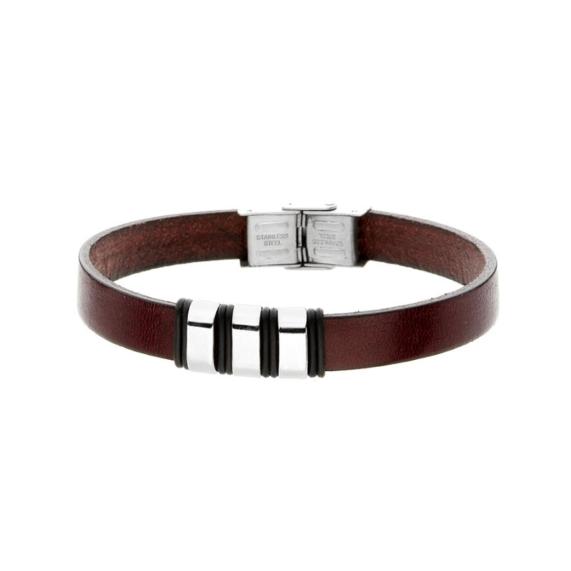 Bransoletka ze stali szlachetnej i brązowej skóry
