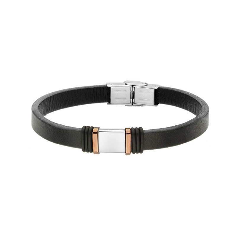 Bransoletka stalowa na czarnym skórzanym pasku