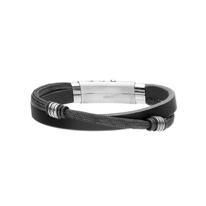 Bransoletka ze stali szlachetnej i czarnej skóry