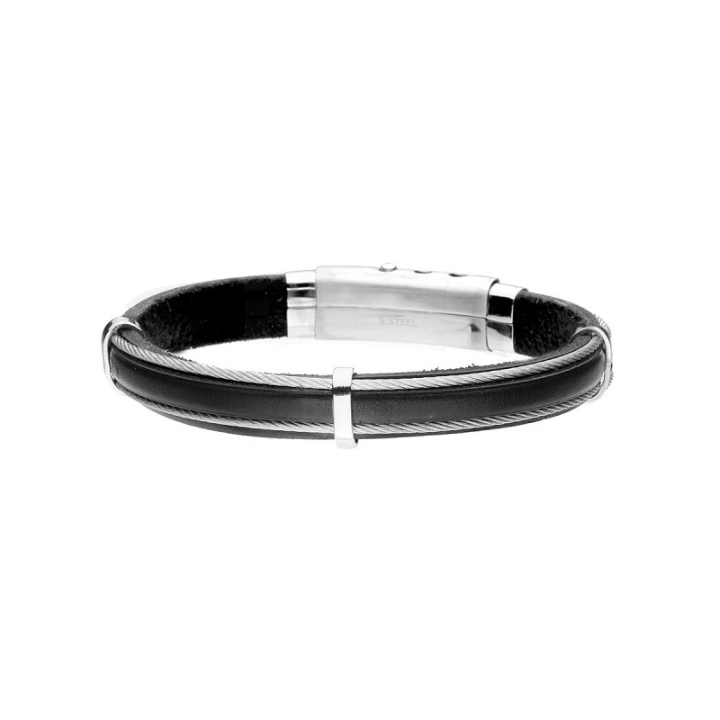 179,00 złBransoletka stalowa na czarnym skórzanym pasku