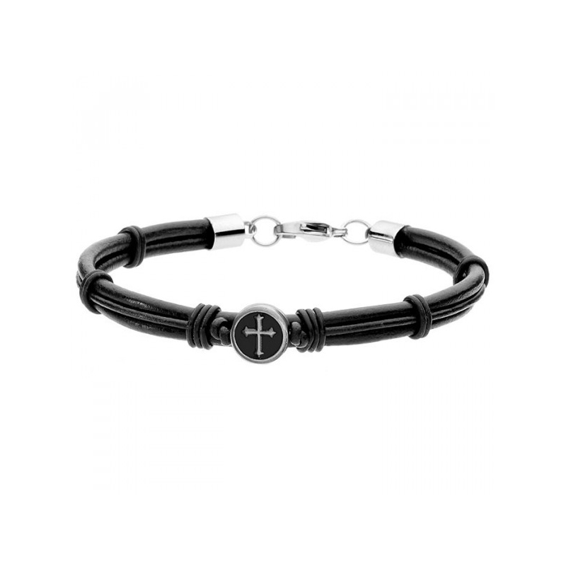 Bransoletka stalowa na pasku ze skóry i sznurka