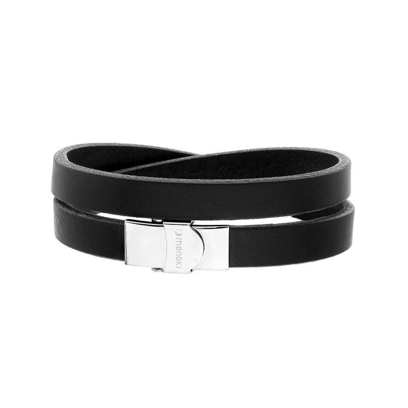 Bransoletka ze stali i plecionej czarnej skóry