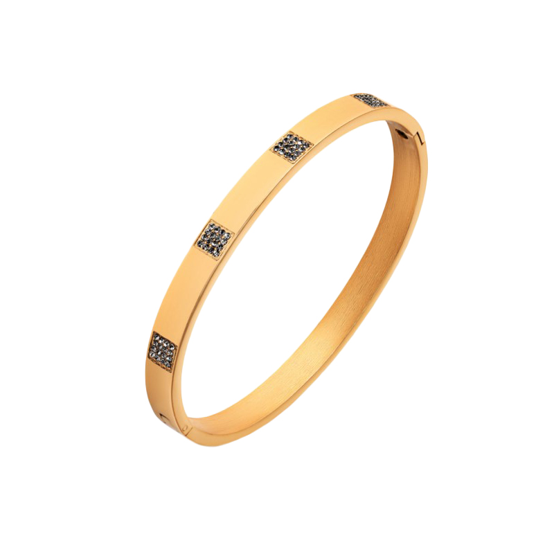 Bransoletka ze stali złoconej sztywna z cyrkoniami