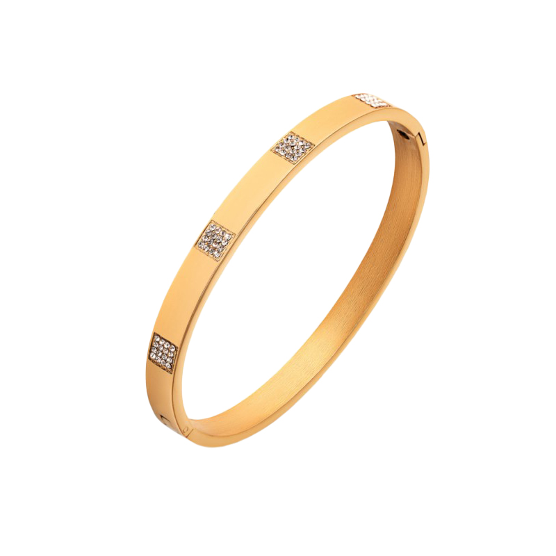 Bransoletka ze stali złoconej sztywna z cyrkoniami
