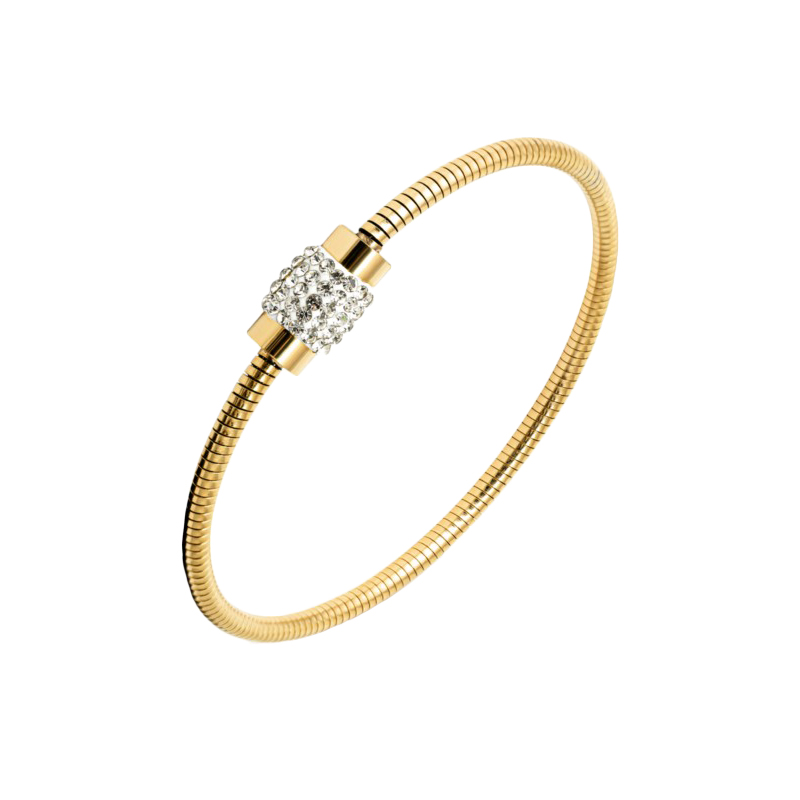 Bransoletka ze stali złoconej sztywna z cyrkoniami