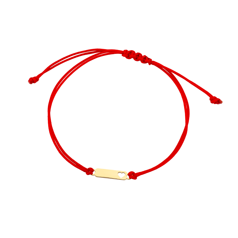 Bransoletka złota blaszka na czerwonym sznurku