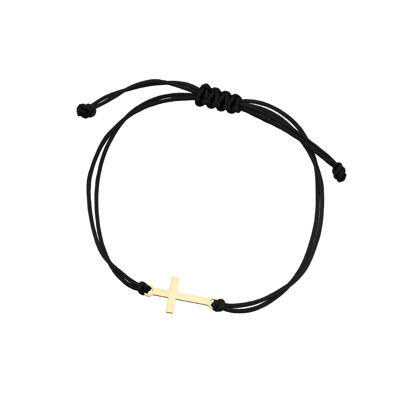 Bransoletka złoty krzyżyk na czarnym sznurku