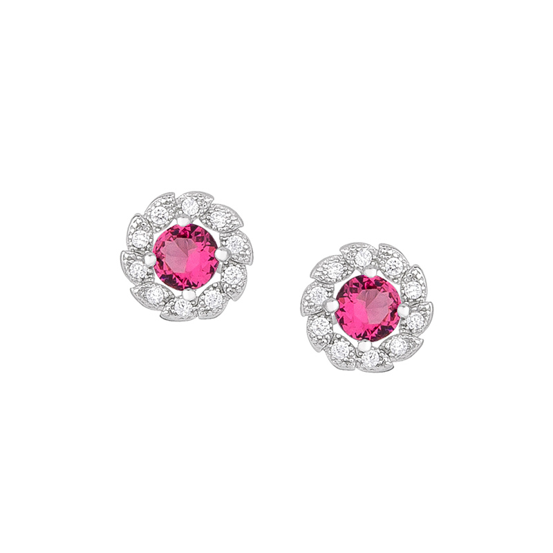 Kolczyki srebrne z różową cyrkonią