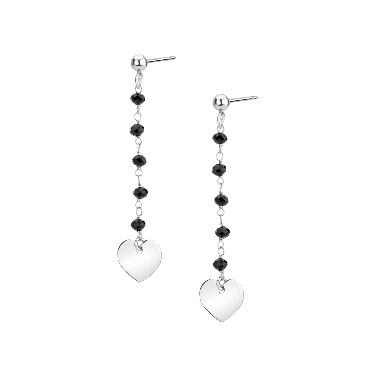 Wyjątkowy duet srebrnych serduszek w towarzystwie czarnych cyrkonii. Biżuteria, która oczaruje wielbicielki romantycznych dodatków. Kolczyki zostały wykonane ze srebra próby 925.