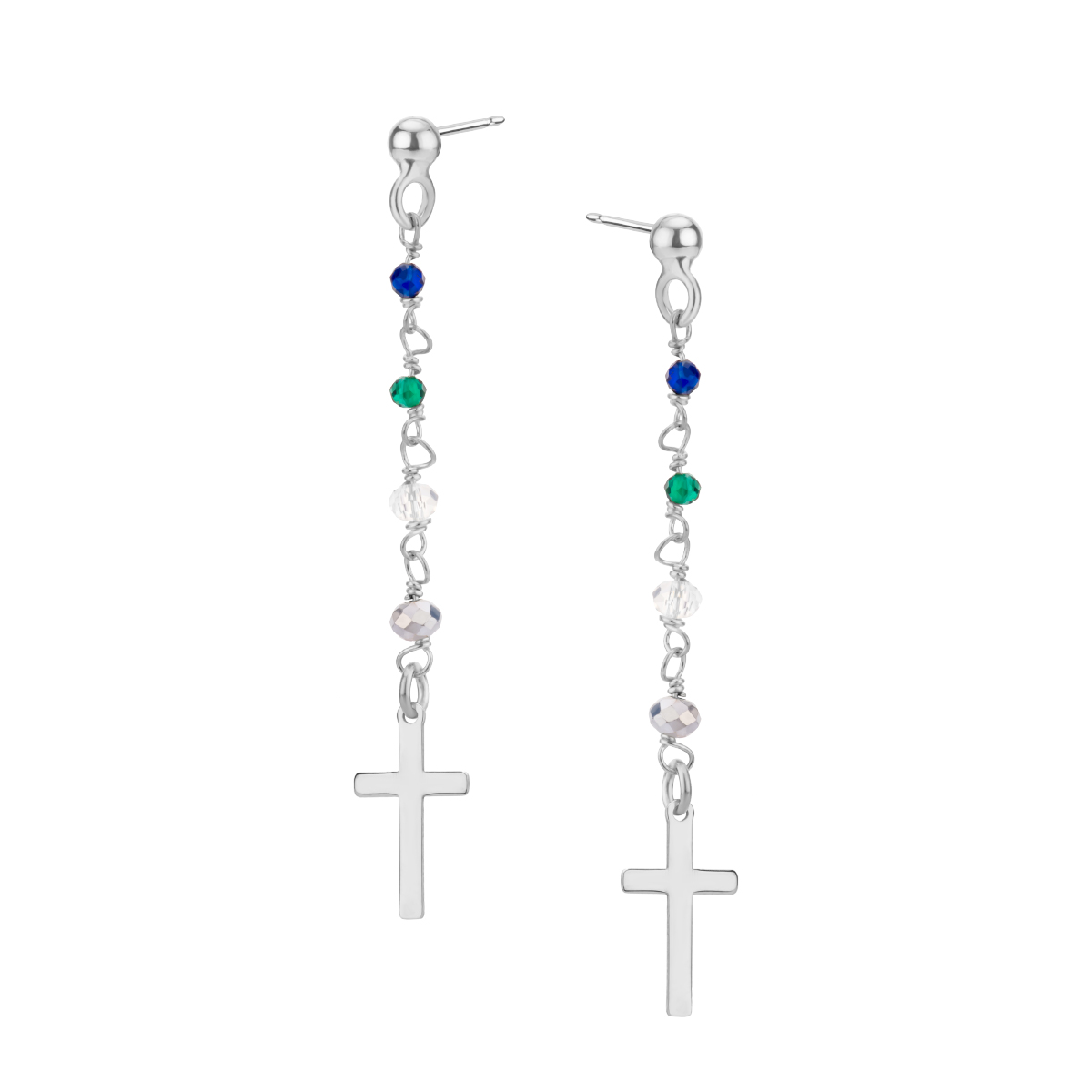 Kolczyki srebrne wiszące z cyrkoniami – krzyż