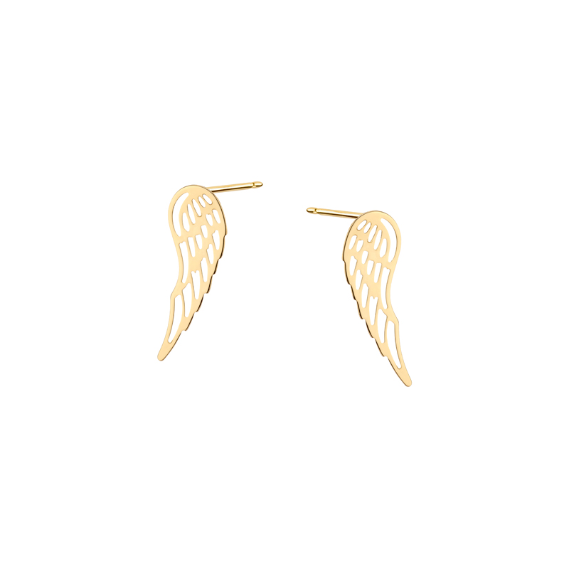 Subtelne kolczyki wykonane ze złota próby 585, posiadają wygodne zapięcie typu sztyft. Polerowane złoto przepięknie mieni się podczas noszenia dodając blasku Twoim stylizacjom. Motyw skrzydeł ozdabiający powierzchnię kolczyków pojawia się w wielu zawieszkach, naszyjnikach i bransoletkach. Dzięki temu kolczyki stworzą idealny komplet z innymi elementami biżuterii.