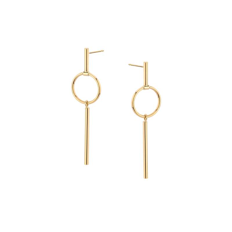 Złote kolczyki wykonane ze złota próby 585. Minimalistyczna, geometryczna forma kolczyków sprawia, że doskonale sprawdzą się zarówno jako biżuteria codzienna jak i wieczorowa. Subtelne kolczyki to idealne uzupełnienie Twojego kompletu biżuterii – przepięknie wyglądają z subtelnymi celebrytkami i pokaźniejszymi naszyjnikami. Wygodne zapięcie typu sztyft zapewnia niezawodność i komfort noszenia.