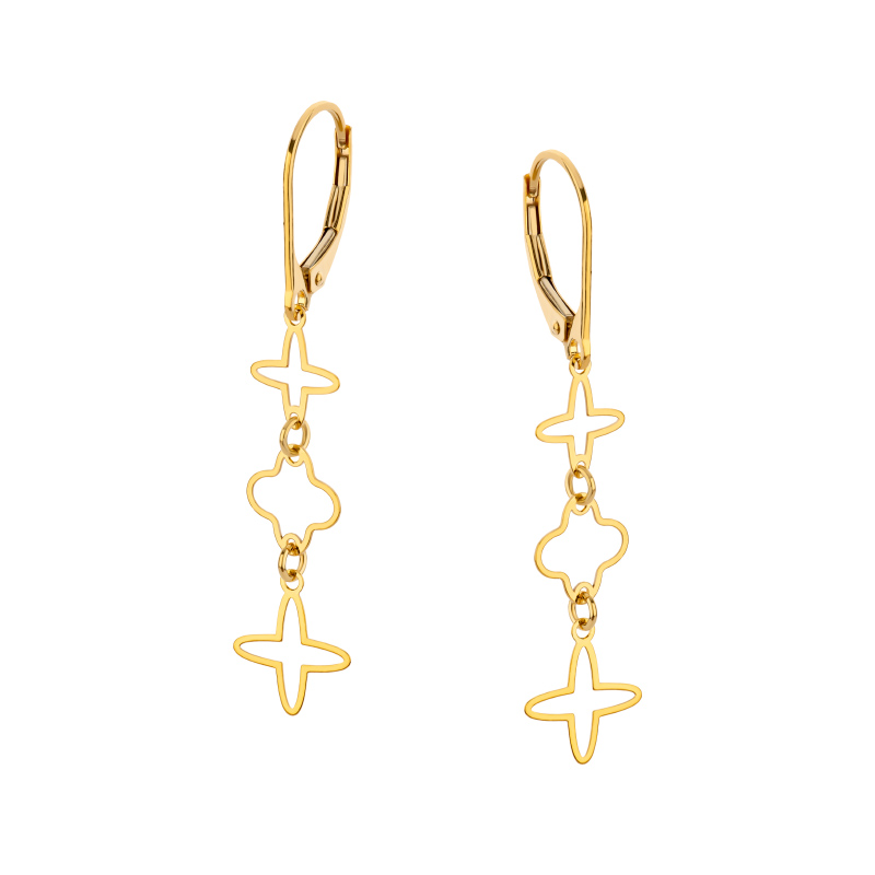Kolczyki złote wiszące koniczynki Lever Back