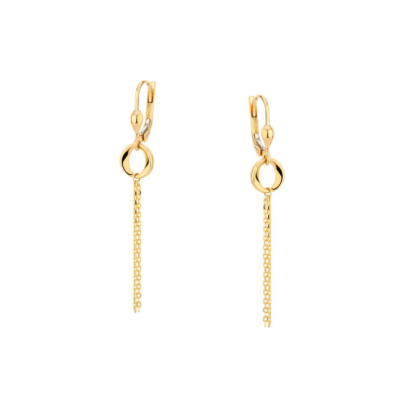 Kolczyki złote kółko i łańcuszki – lever back