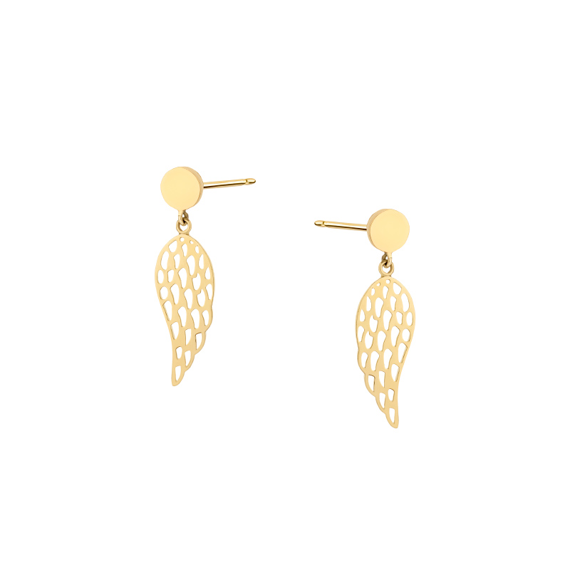 Kolczyki złote wiszące na sztyfcie – skrzydła