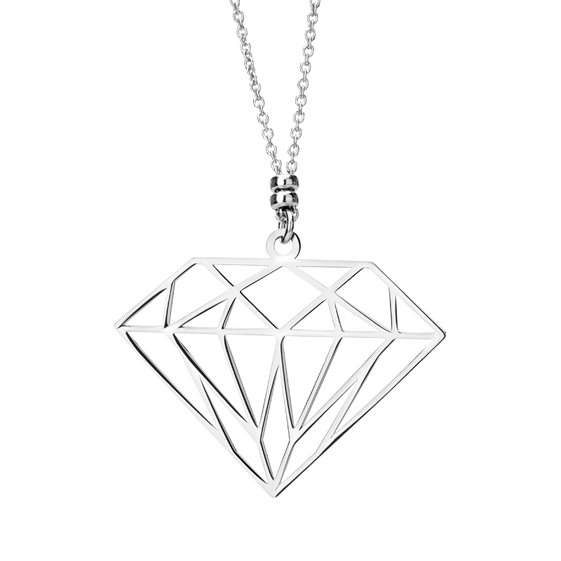 Modny naszyjnik wykonany ze srebra próby 925. Geometryczna zawieszka w formie ażurowego diamentu zdobi delikatny łańcuszek. Dodatek przypadnie do gustu osobom lubiącym oryginalną i modną biżuterię.