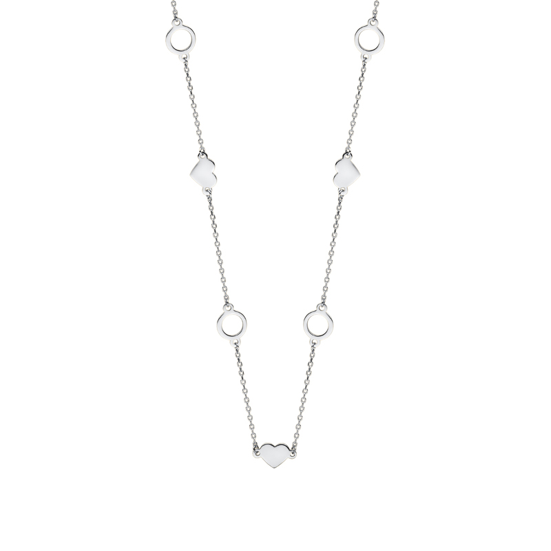 Naszyjnik srebrny z sercami i ringami