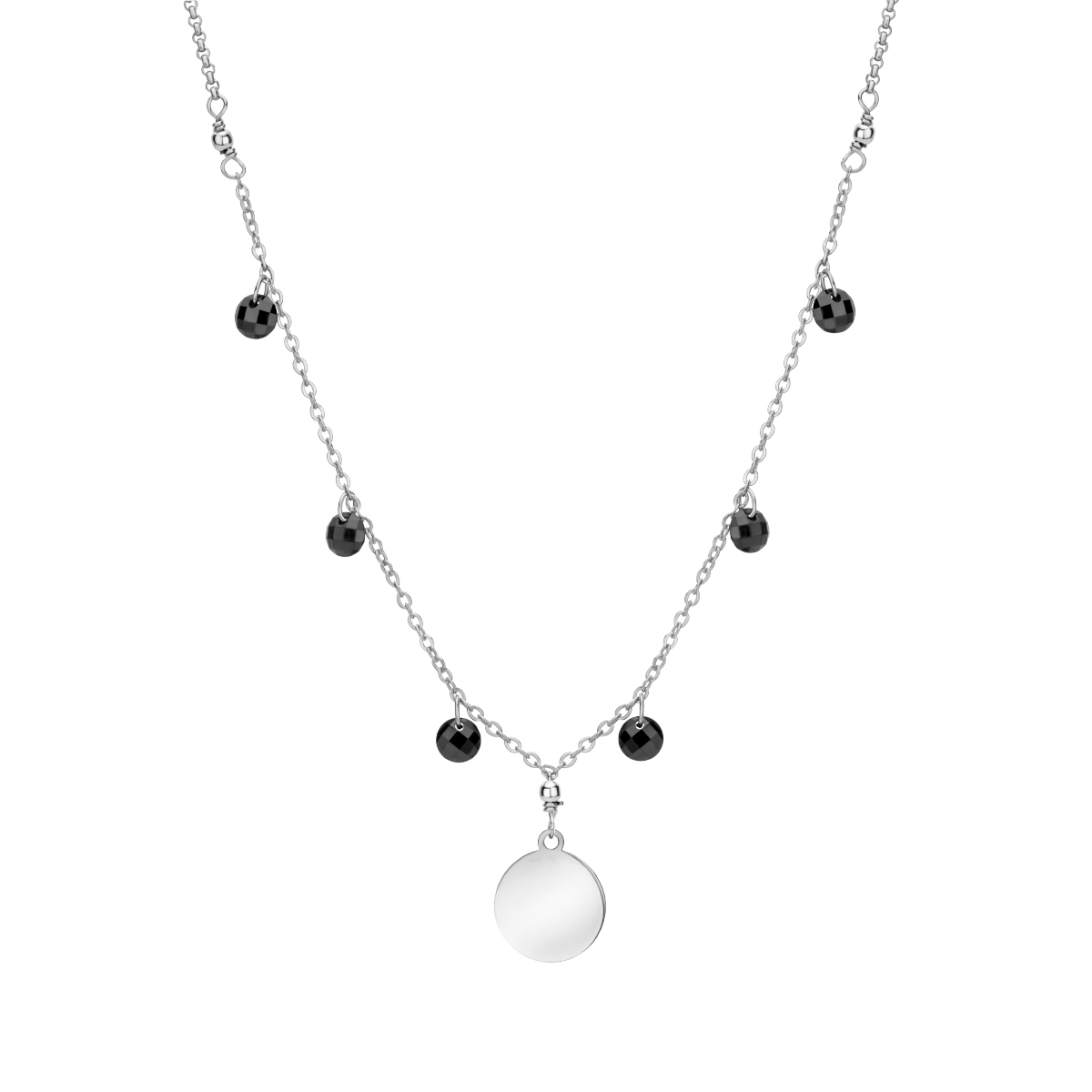 Naszyjnik srebrny z blaszką i czarnymi koralikami