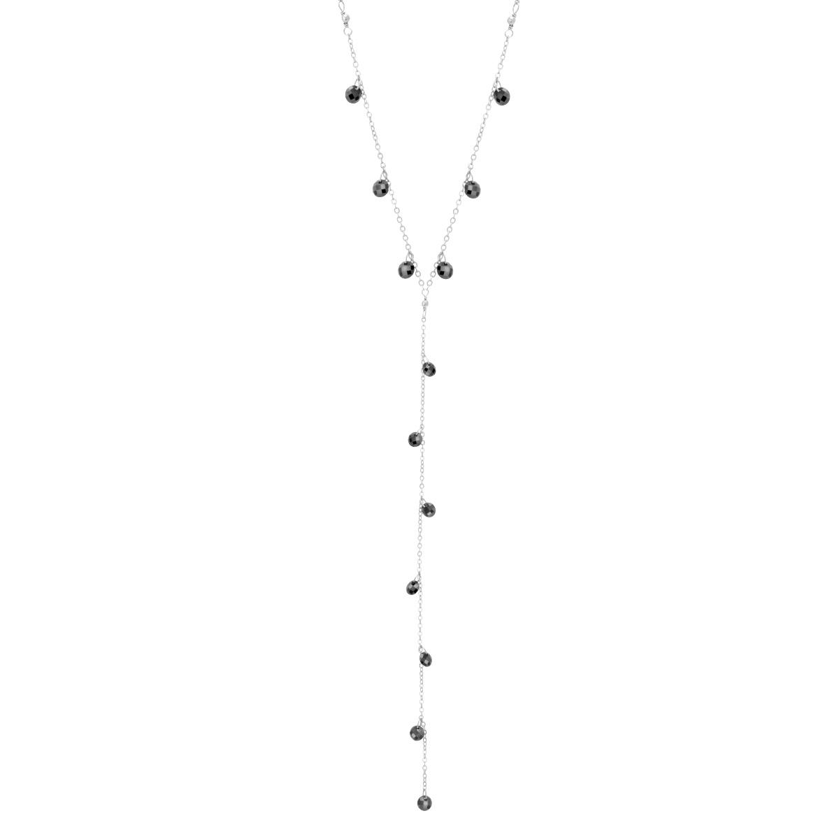 Naszyjnik srebrny krawatka z czarnymi koralikami