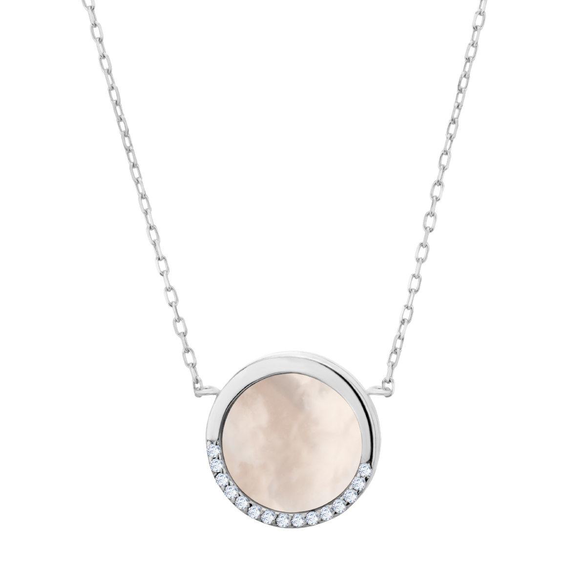 Naszyjnik srebrny z cyrkoniami i masą perłową
