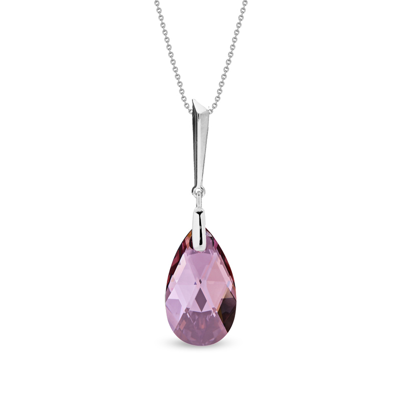Naszyjnik wykonany ze srebra próby 925. Wykorzystany kryształ o pięknej, fioletowej barwie doskonale mieni się podczas noszenia przyciągając spojrzenia.