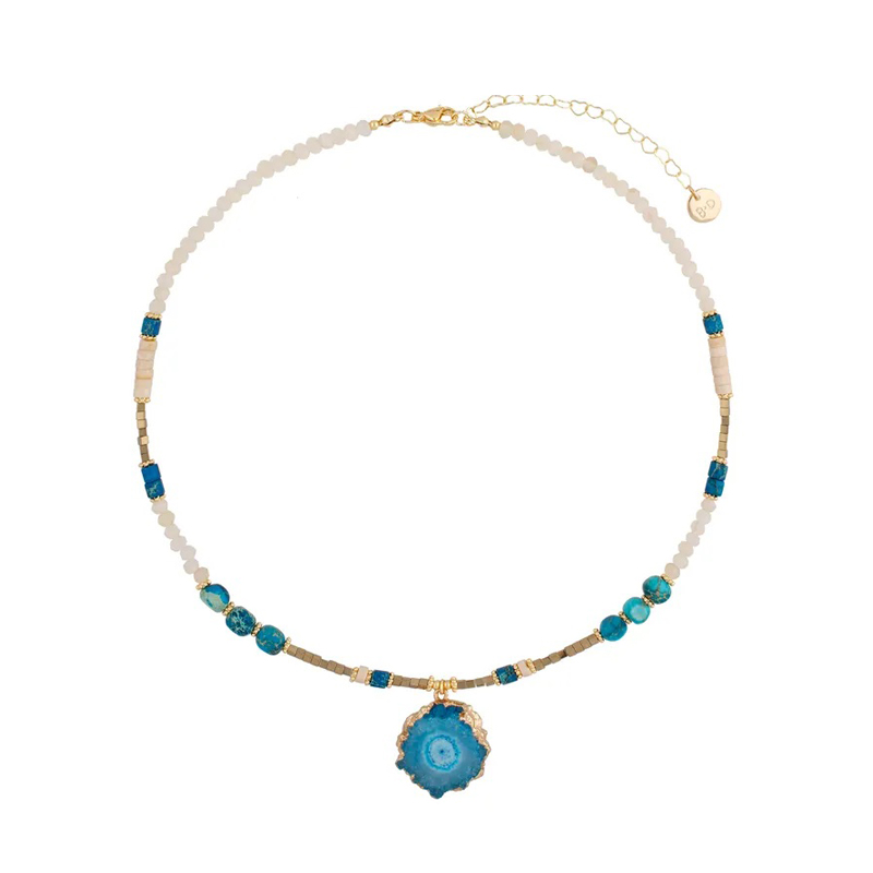 Naszyjnik z beżowymi kamieniami i różą z mosiądzu