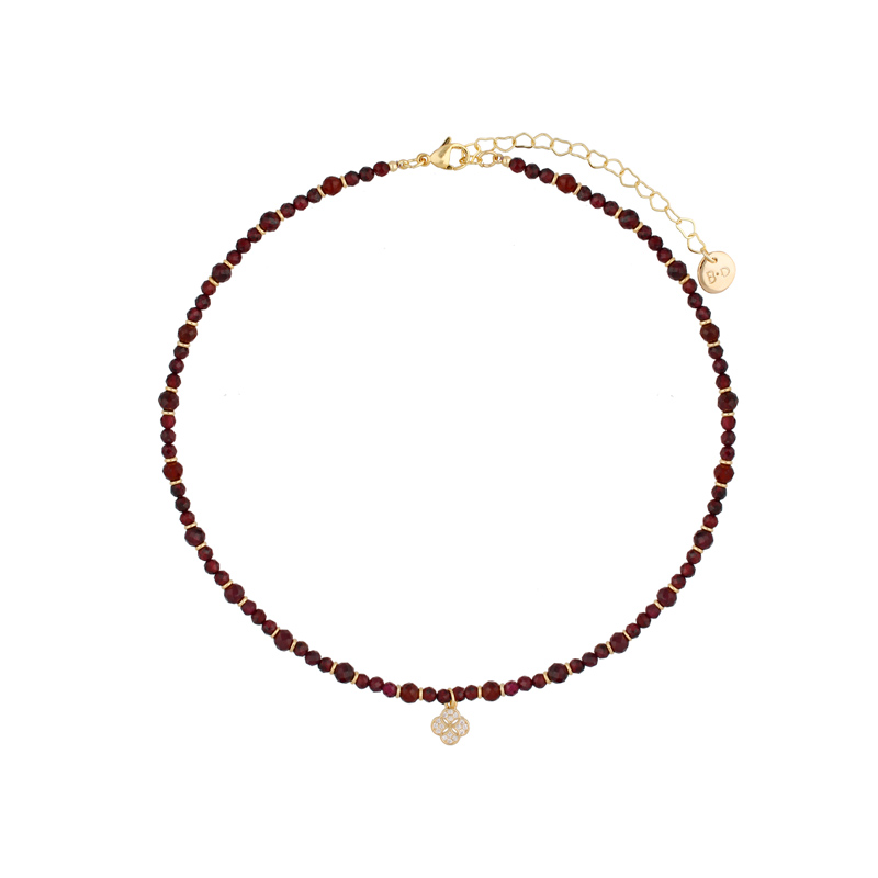 Naszyjnik z mosiądzu i granatów fasetowanych