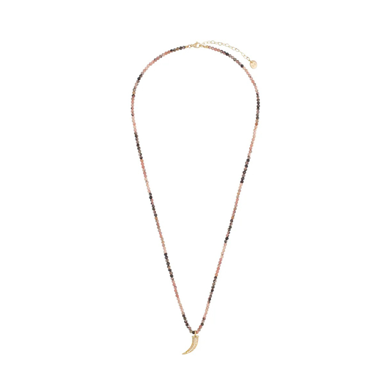 Naszyjnik z rodochrozytami i zawieszką z kłem