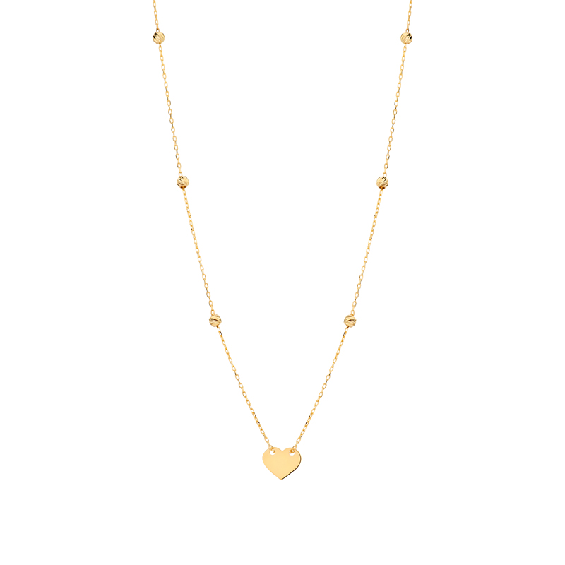 Naszyjnik złoty z sercem i fazowanymi kuleczkami