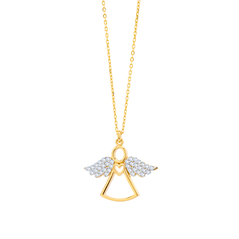 Naszyjnik złoty z cyrkoniami Aniołek