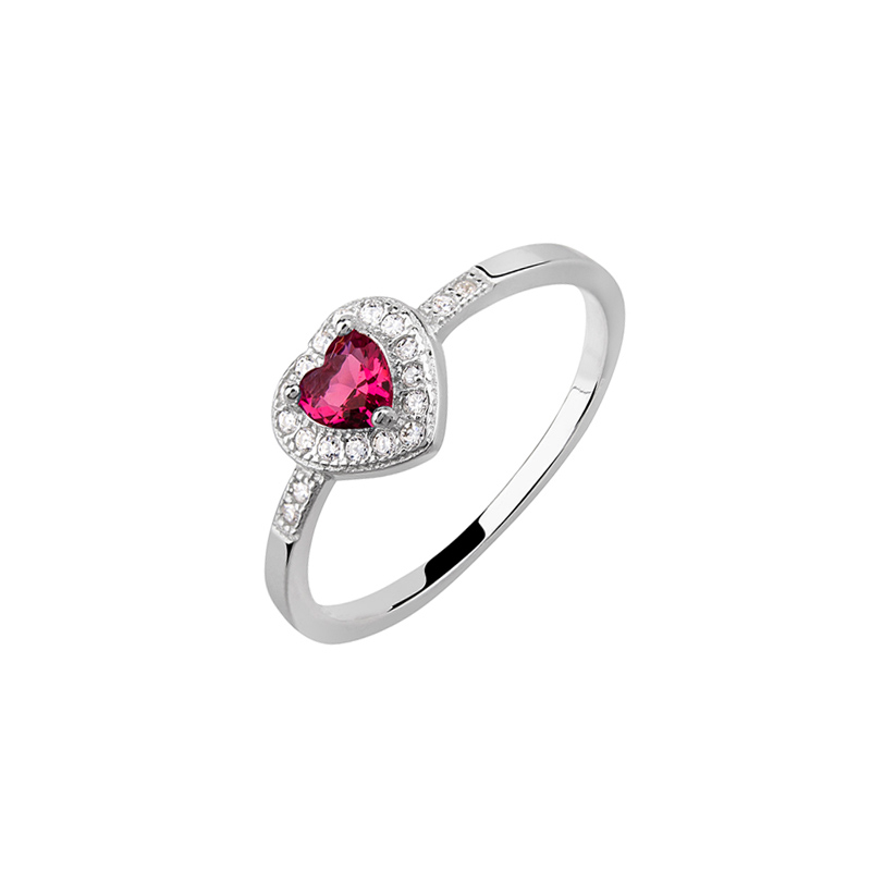 Pierścionek srebrny serce z czerwoną cyrkonią