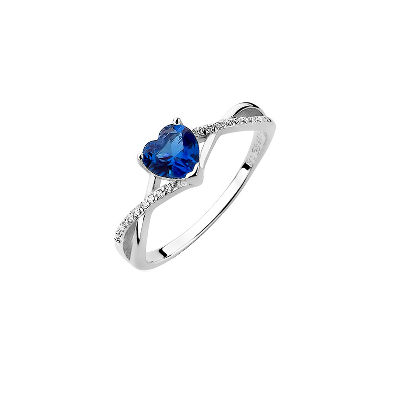 Pierścionek srebrny z cyrkoniami niebieskie serce