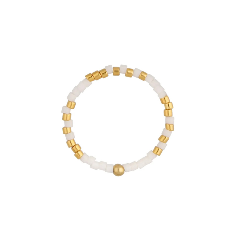 Pierścionek z białymi i złotymi koralikami