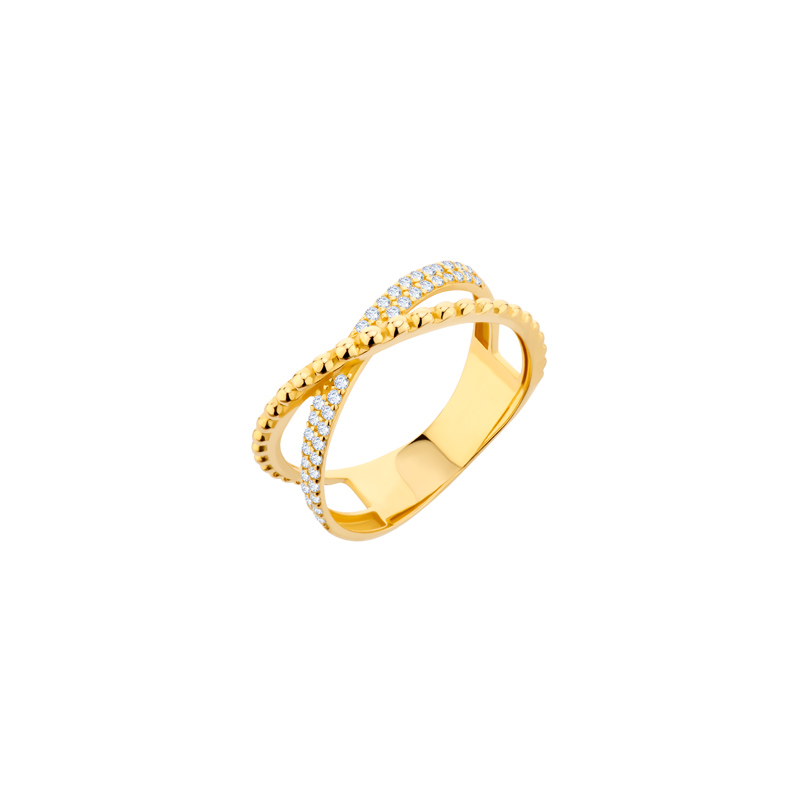 Pierścionek złoty zaplecione ringi z cyrkoniami