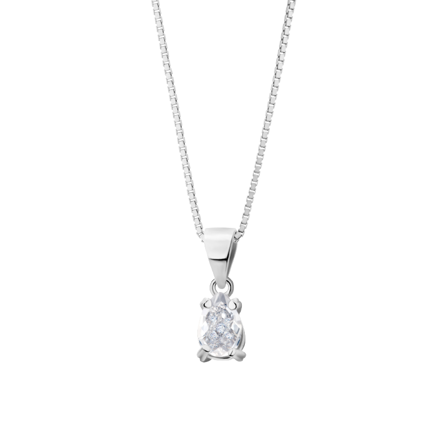 Zawieszka wykonana ze srebra próby 925 z wyjątkowym detalem, mieniącym się błękitnymi refleksami. Uroczy dodatek, który dodaje wdzięku i dziewczęcego uroku. Biżuteria dedykowana miłośniczkom subtelnych, ale połyskliwych dodatków.