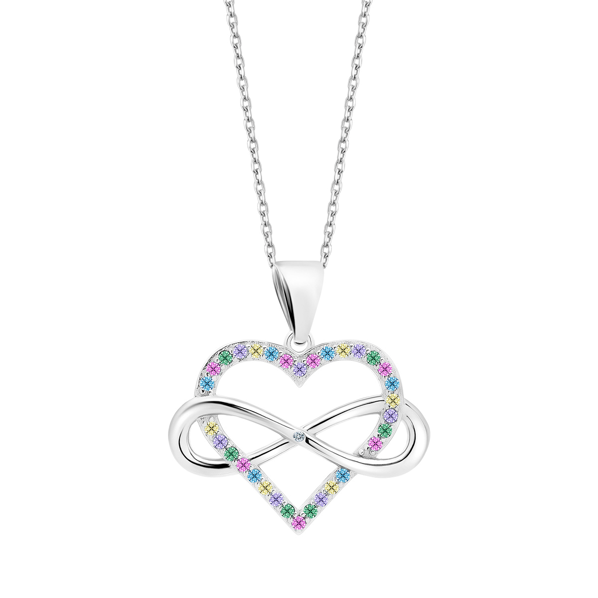 Zawieszka srebrna serce z kolorowymi cyrkoniami