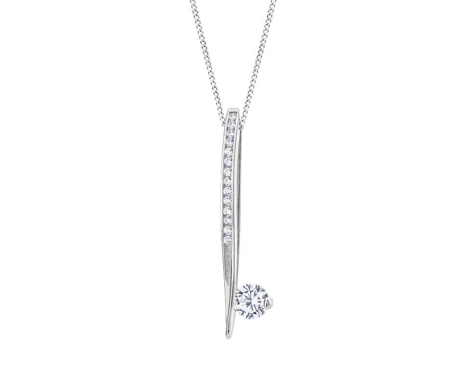 Gładka, niemal lustrzana powierzchnia w połączeniu z lśniącymi, cyrkonii osadzonymi w niepowtarzalnej formie tworzy zjawiskową całość. Subtelna biżuteria idealnie podkreśli niepowtarzalność każdej kobiety. Zawieszka została wykonana ze srebra próby 925.
