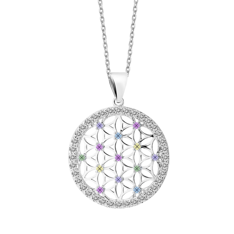 Zawieszka srebrna okrągła z kolorowymi cyrkoniami