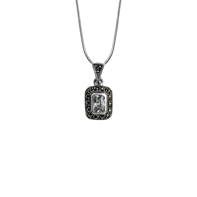 Zawieszka ozdobiona połyskującą cyrkonią otoczoną szlachetnymi markazytami. To iście królewski dodatek o wyrazistym charakterze. Przepiękna biżuteria w stylu retro od kolekcji Epoque Royale. Zawieszka została wykonana ze srebra próby 925.