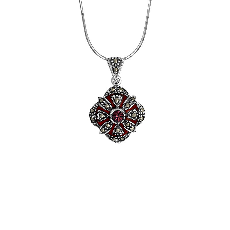 Zawieszka do kolekcji Epoque Royale zachowana w stylistyce retro. Biżuteria, która zachwyca klasą i bogatym zdobieniem. Iście królewski dodatek ozdobiony lśniącymi markazytami. Zawieszka została wykonana ze srebra próby 925.