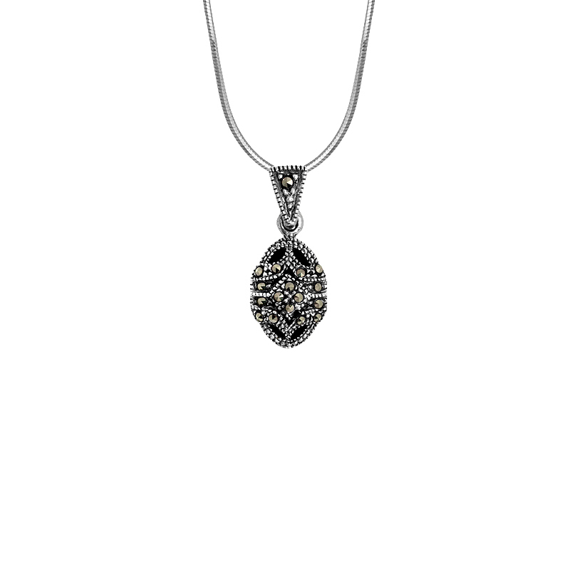 Zjawiskowa zawieszka od kolekcji Epoque Royale. Spektakularny wzór ozdobiony markazytami. Biżuteria dla miłośniczek wyrazistych ozdób w stylistyce retro. Zawieszka została wykonana ze srebra próby 925.