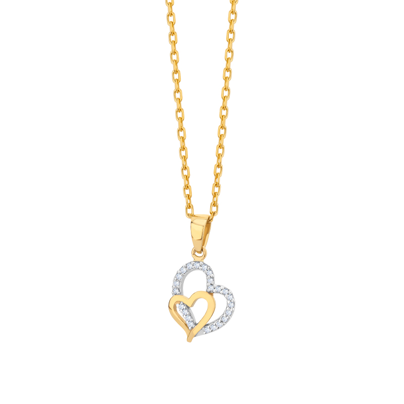 Subtelna zawieszka wykonana ze złota próby 333. Mniejsze serce pięknie mieni się blaskiem żółtego kruszcu. Większe, ozdobione wieloma połyskującymi białymi cyrkoniami, dodaje zawieszce wyjątkowego uroku. Delikatna forma sprawia, że zawieszka przypadnie do gustu każdej miłośniczce złotych dodatków. Z pewnością stanie się Twoim ulubionym elementem biżuterii, z którym nie będziesz chciała się rozstać. Zawieszka doskonale prezentuje się na łańcuszkach o splocie anker lub klasycznym splocie singapur.