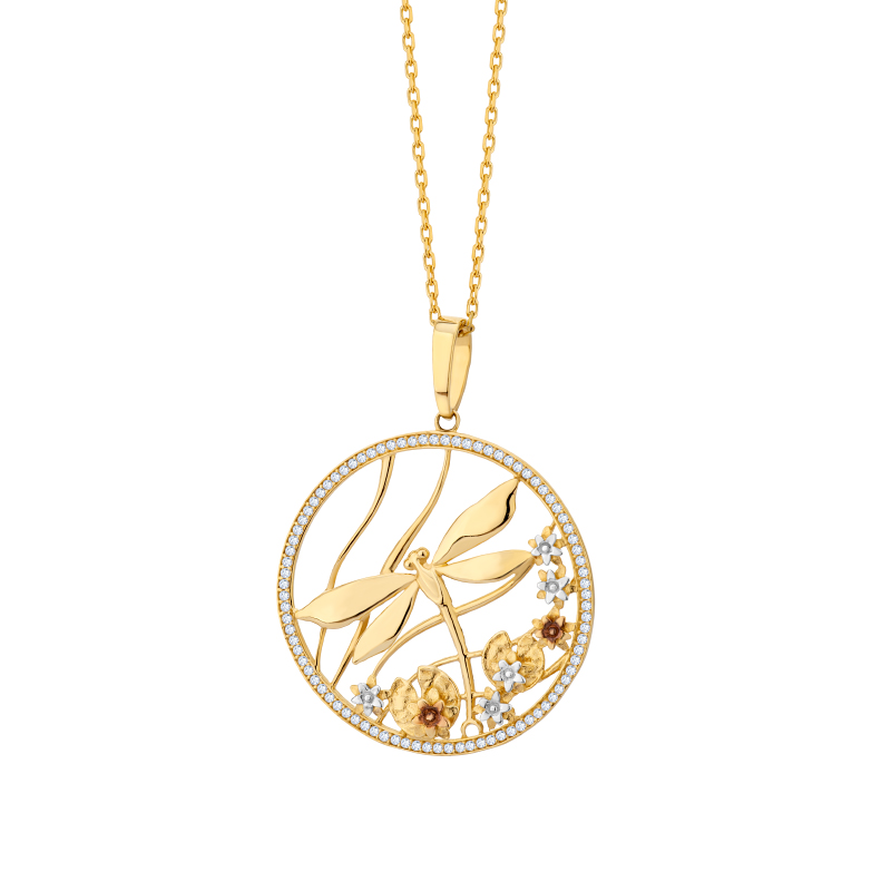 Zawieszka złota ażurowa z cyrkoniami i ważką