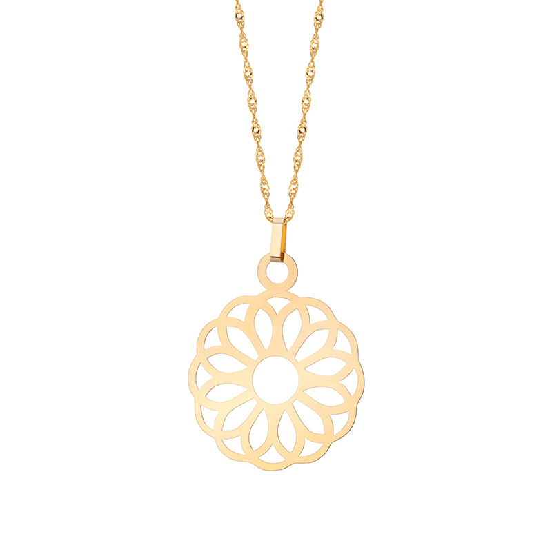 Ażurowa zawieszka wykonana ze złota próby 585. Subtelna i zarazem finezyjna forma zawieszki to doskonała propozycja dla Pań poszukujących ciekawych dodatków. Polerowana powierzchnia przepięknie mieni się podczas noszenia dodając blasku każdej stylizacji. Idealnie komponuje się z innymi elementami biżuterii pozwalając na tworzenie wyjątkowych kompletów, które podkreślą Twój wyjątkowy styl.
